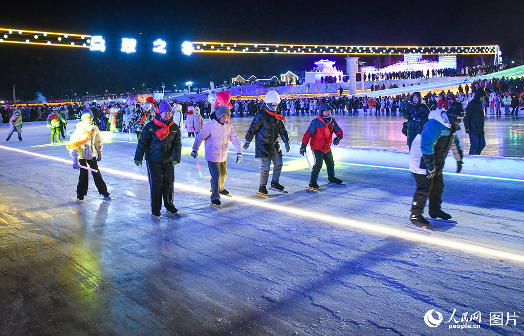 People immerse themselves in the joy of ice skating at the Ice and Snow Fairy Tale Park in Yichun city, northeast China's Heilongjiang Province, Dec. 31, 2023. (People's Daily Online/Su Jinggang)