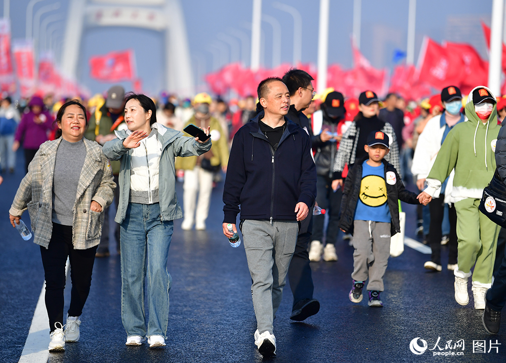 Around 90,000 people participate in a brisk walking event in Nanchang, east China's Jiangxi Province, Dec. 31, 2023. (People's Daily Online/Shi Yu)