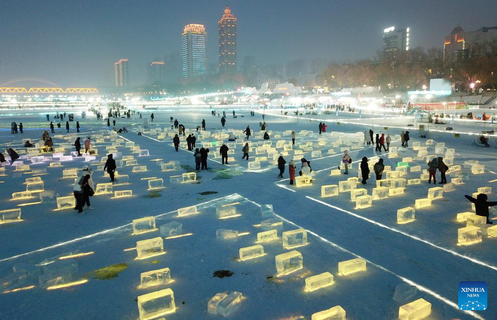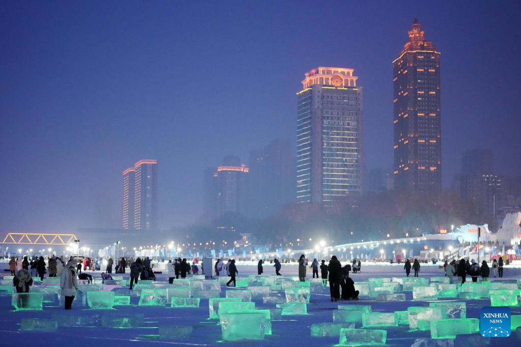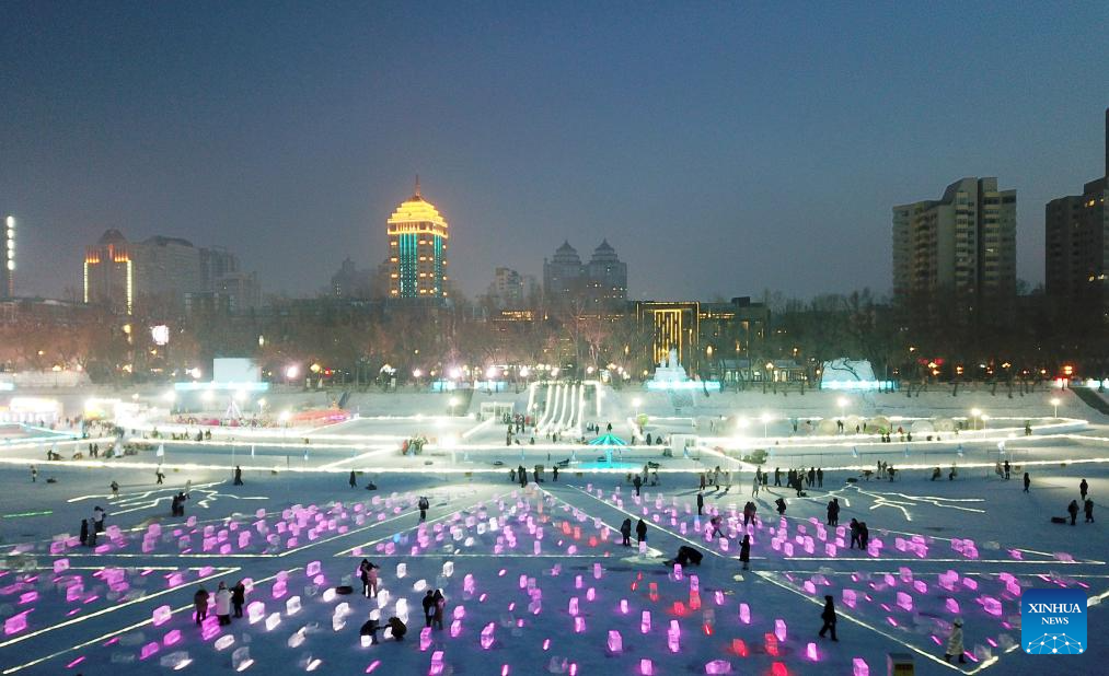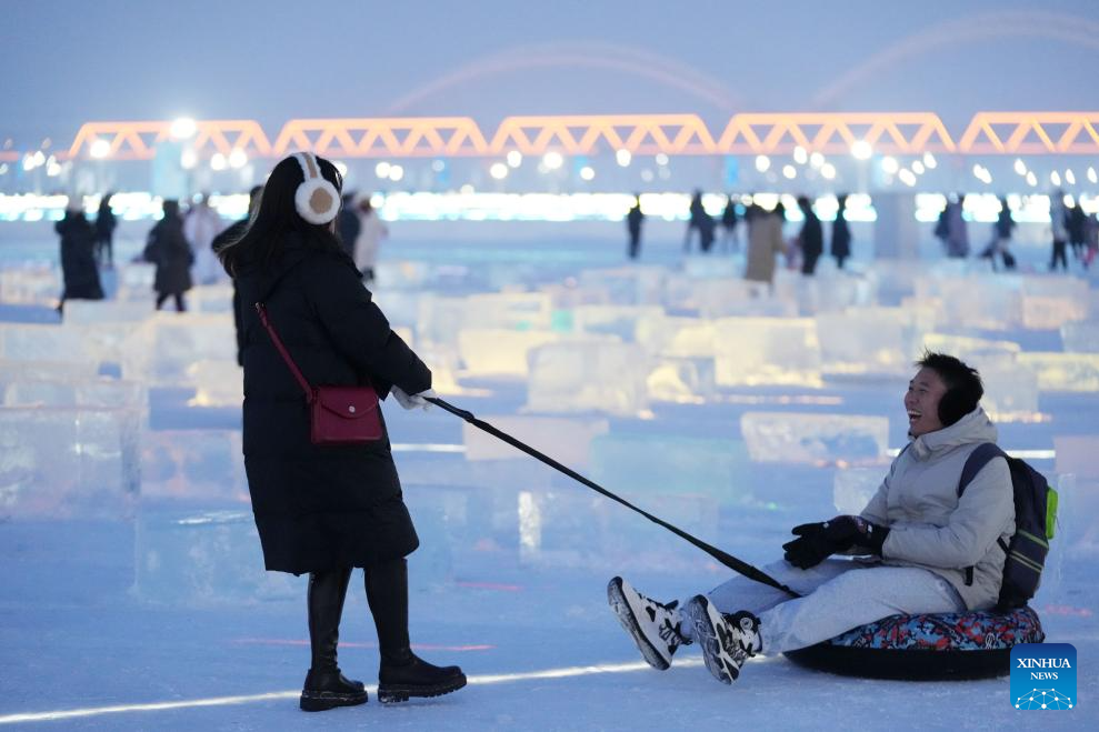 Tourists have fun at Harbin Songhua River Ice and Snow Carnival in Harbin, northeast China's Heilongjiang Province, Jan. 3, 2024. (Xinhua/Wang Jianwei)