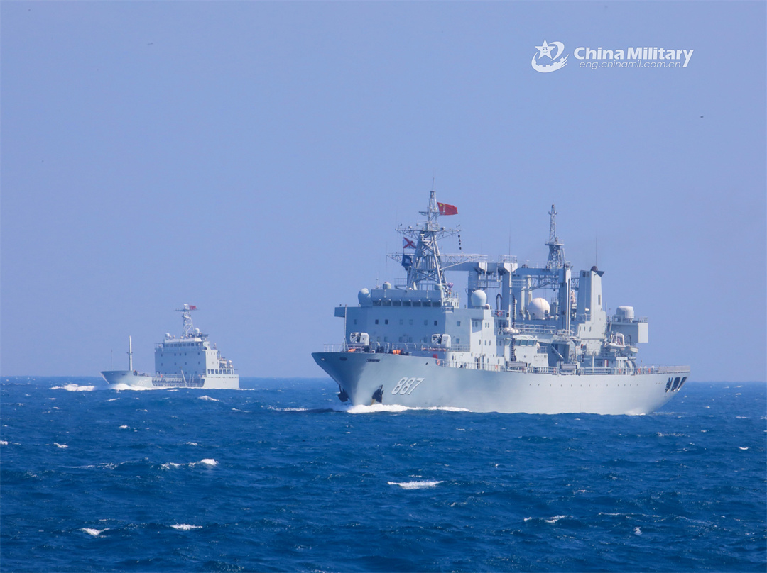 Nanshui 978 water tanker under a naval service ship group of the PLA Navy sails on the sea during a four-day exercise in late December, 2023. (eng.chinamil.com.cn/Photo by Wu Huanqing)
