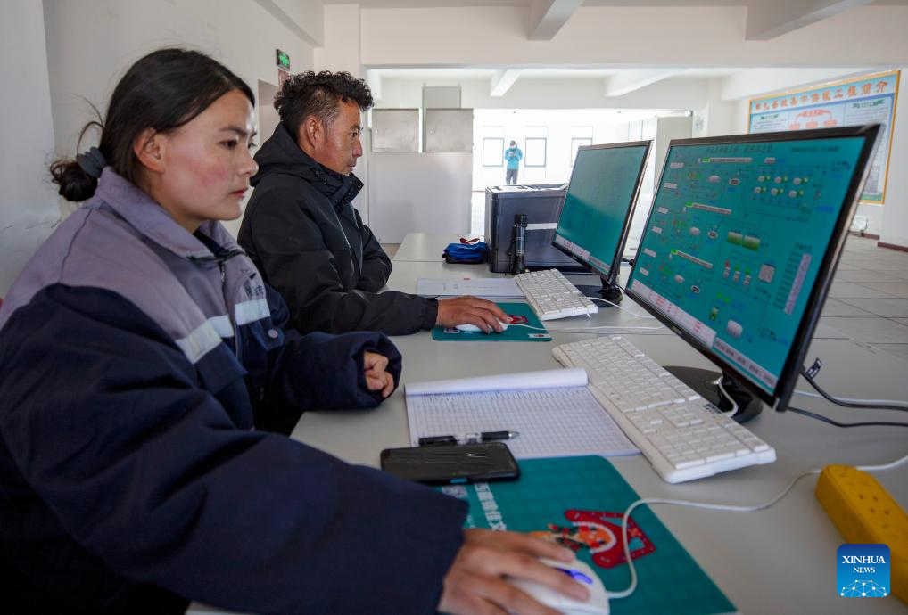 Staff members monitor the operation of a heating plant in Xainza County, southwest China's Xizang Autonomous Region, Jan. 6, 2024.?(Xinhua/Jiang Fan)