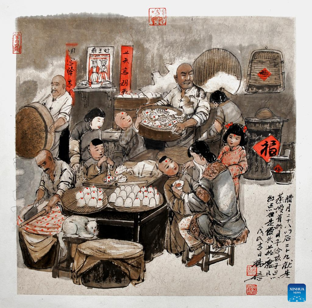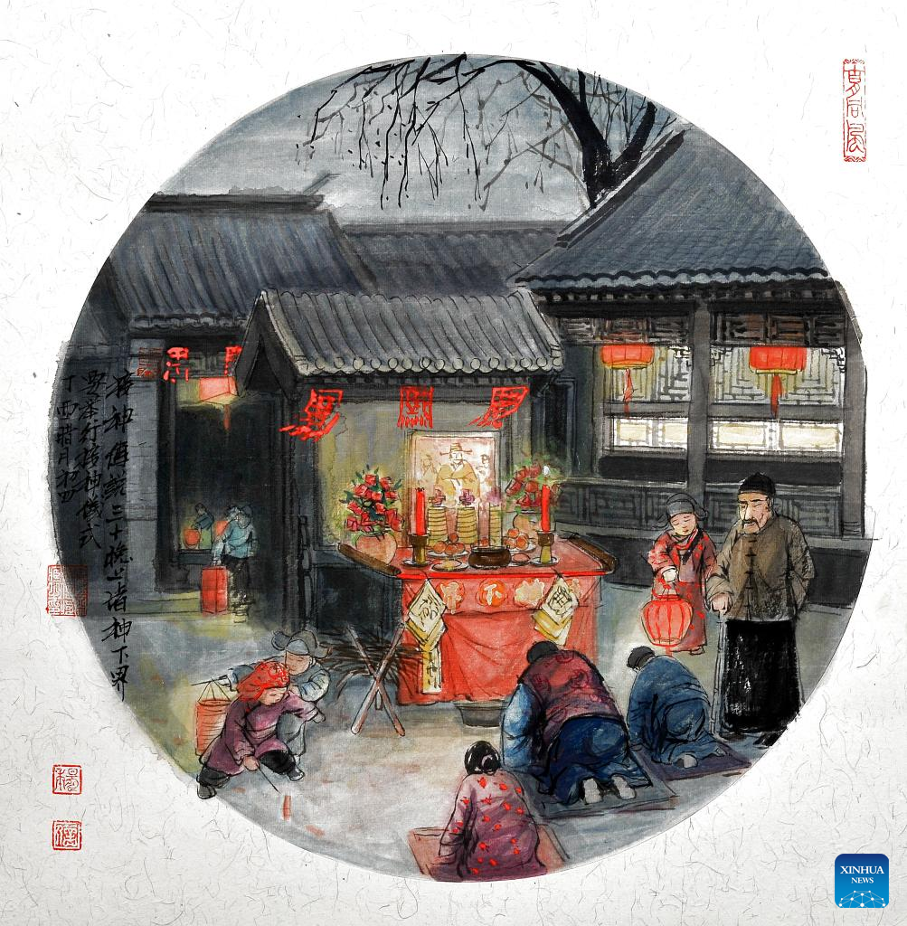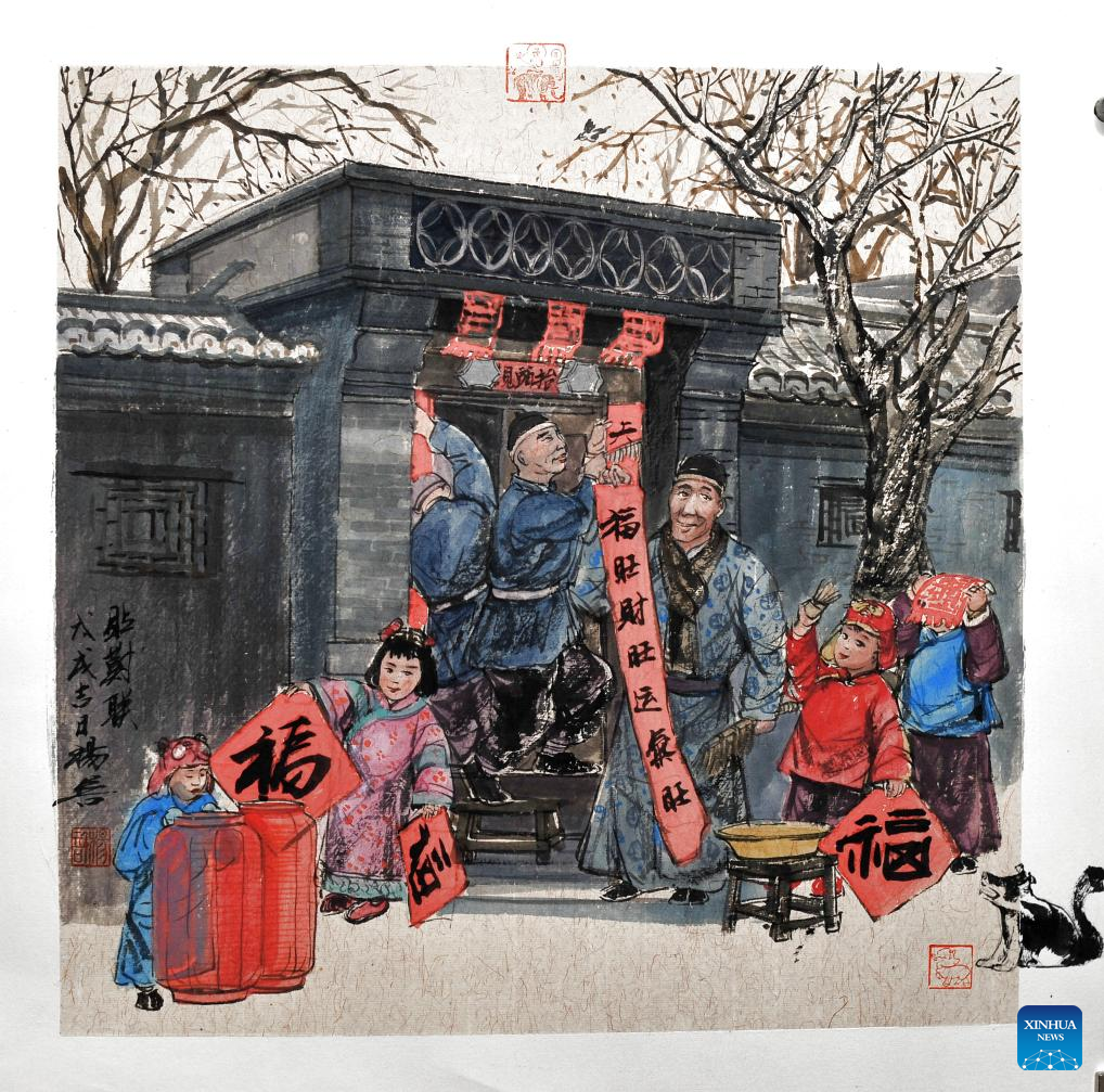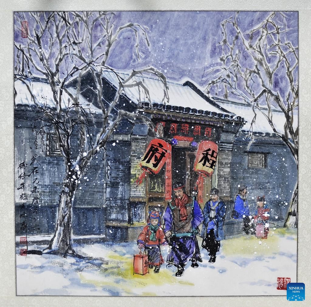 A traditional Beijing painting by Yang Xin is displayed during an exhibition in Beijing, capital of China, Jan. 20, 2017. (Xinhua/Li Xin)