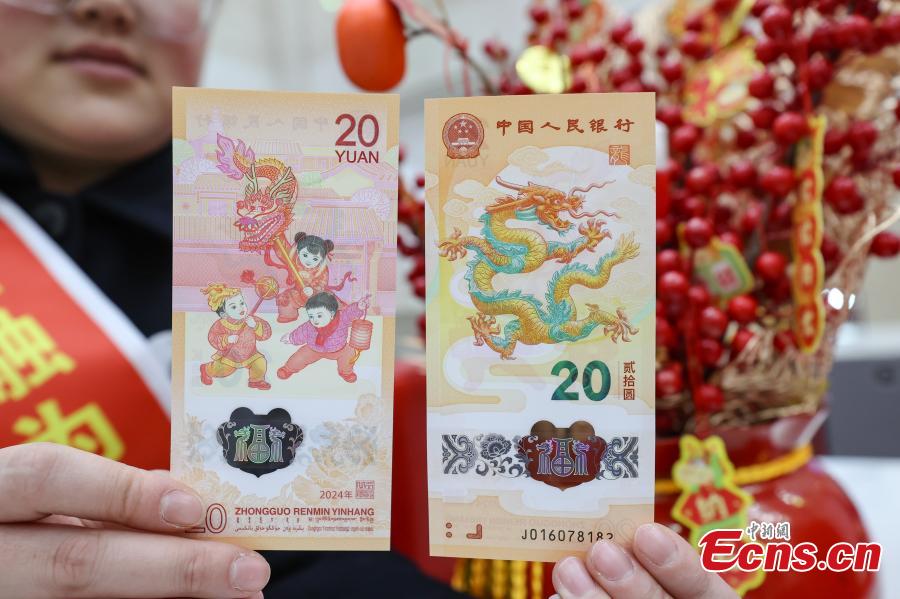 The 2024 New Year commemorative banknotes are displayed at an ICBC bank branch in Guiyang, southwest China's Guizhou Province, Jan. 9, 2024. (Photo: China News Service/Qu Honglun)
