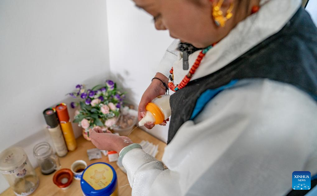 Tenzin Drolma prepares for the farmers' New Year celebrations at a welfare house in Xigaze, southwest China's Xizang Autonomous Region, Jan. 8, 2024. (Photo by Tenzin Nyida/Xinhua)