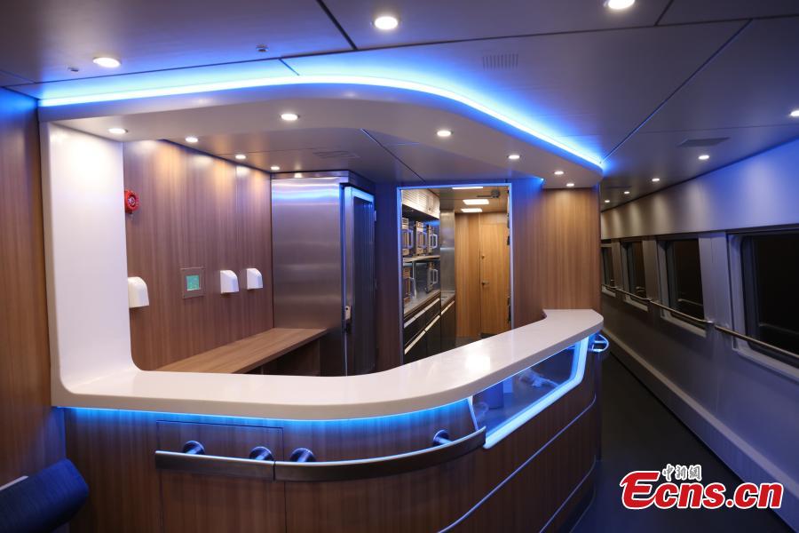 The bar counter in the CR200J1-C Fuxing high-speed train in Xi'an, northwest China's Shaanxi Province. (Photo: China News Service/Jia Zhiwei)
