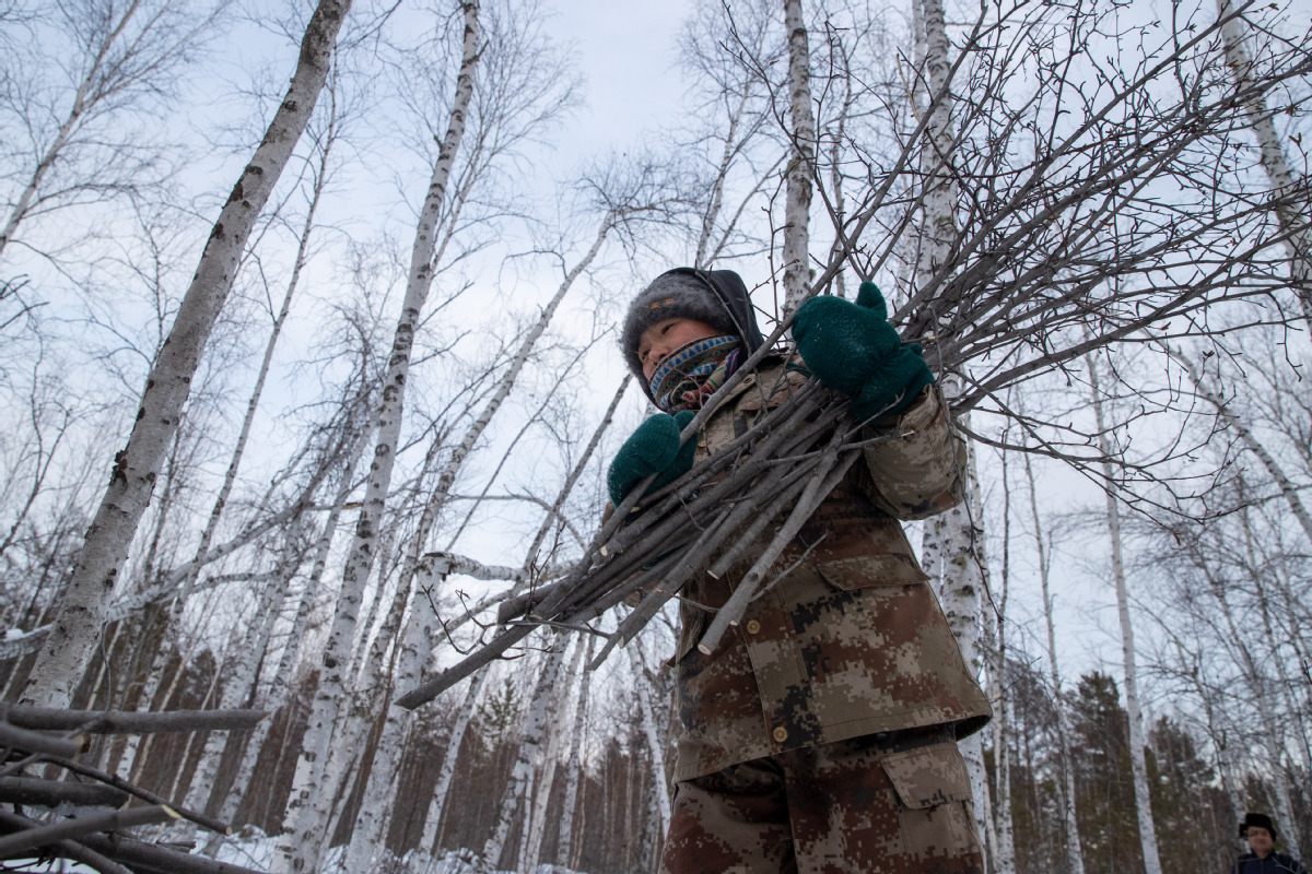Pang Shanshan, a worker at the farm, conducts a forest clearing operation in January last year. ZHANG TAO/XINHUA