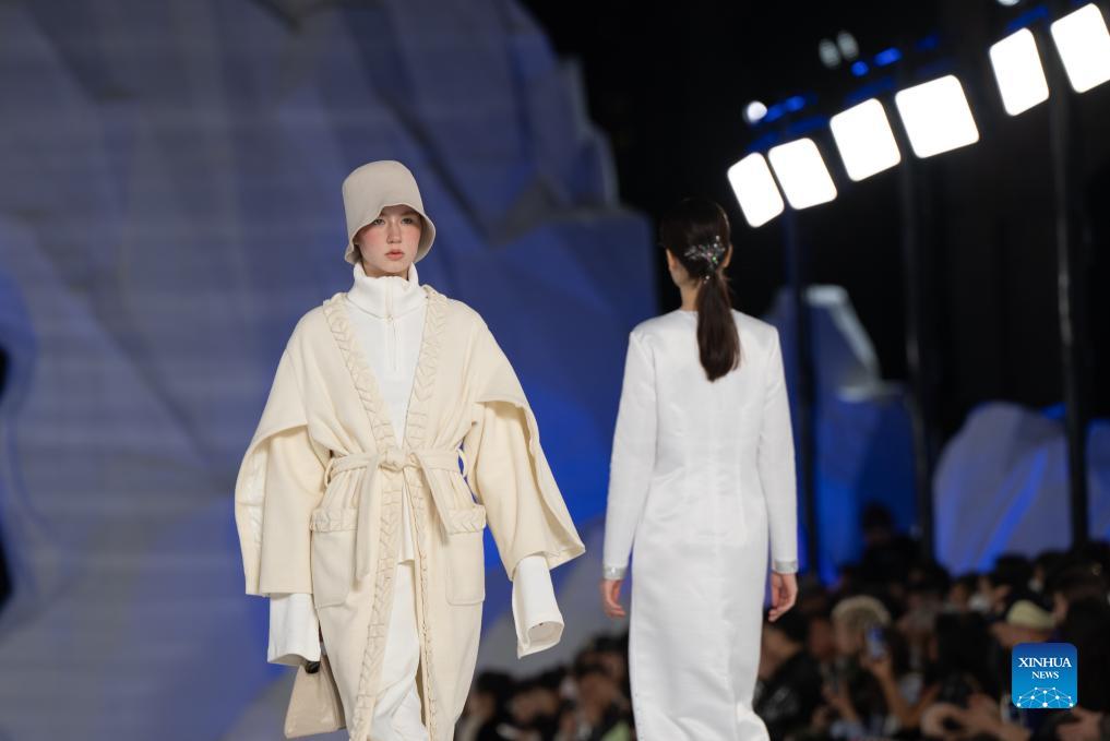 Models present creations at the Harbin Fashion Week in Harbin, northeast China's Heilongjiang Province, Jan. 11, 2024. The 2024 Harbin Fashion Week kicked off here on Thursday. (Xinhua/Xie Jianfei)