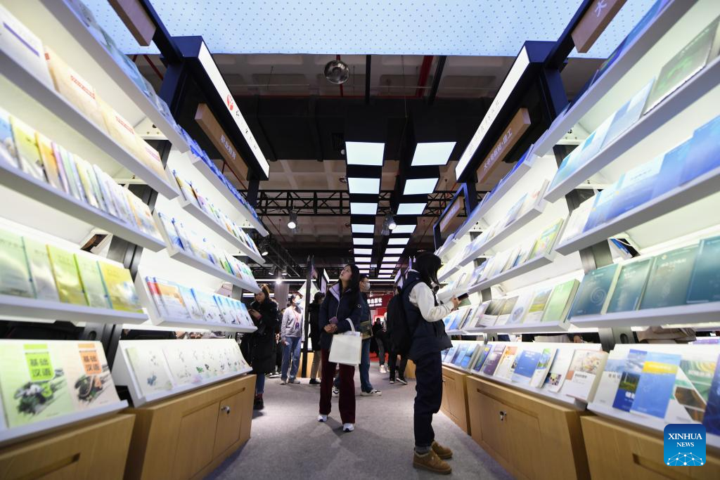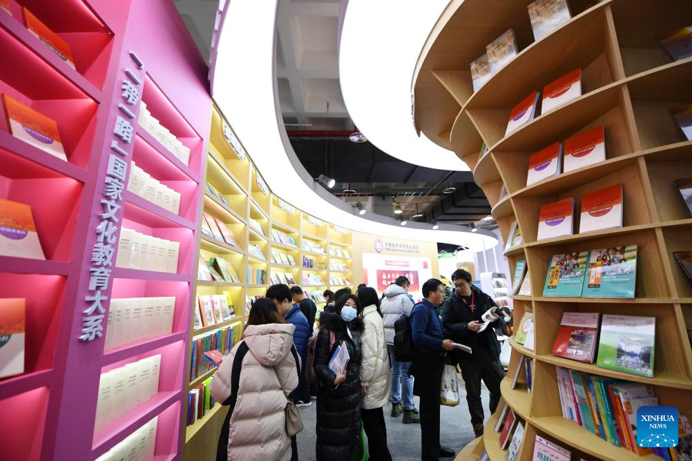 People visit the 2024 Beijing Book Fair in Beijing, capital of China, Jan. 11, 2024. More than 720 exhibitors participated in the 2024 Beijing Book Fair which started on Thursday, showcasing more than 400,000 kinds of books. (Xinhua/Ju Huanzong)