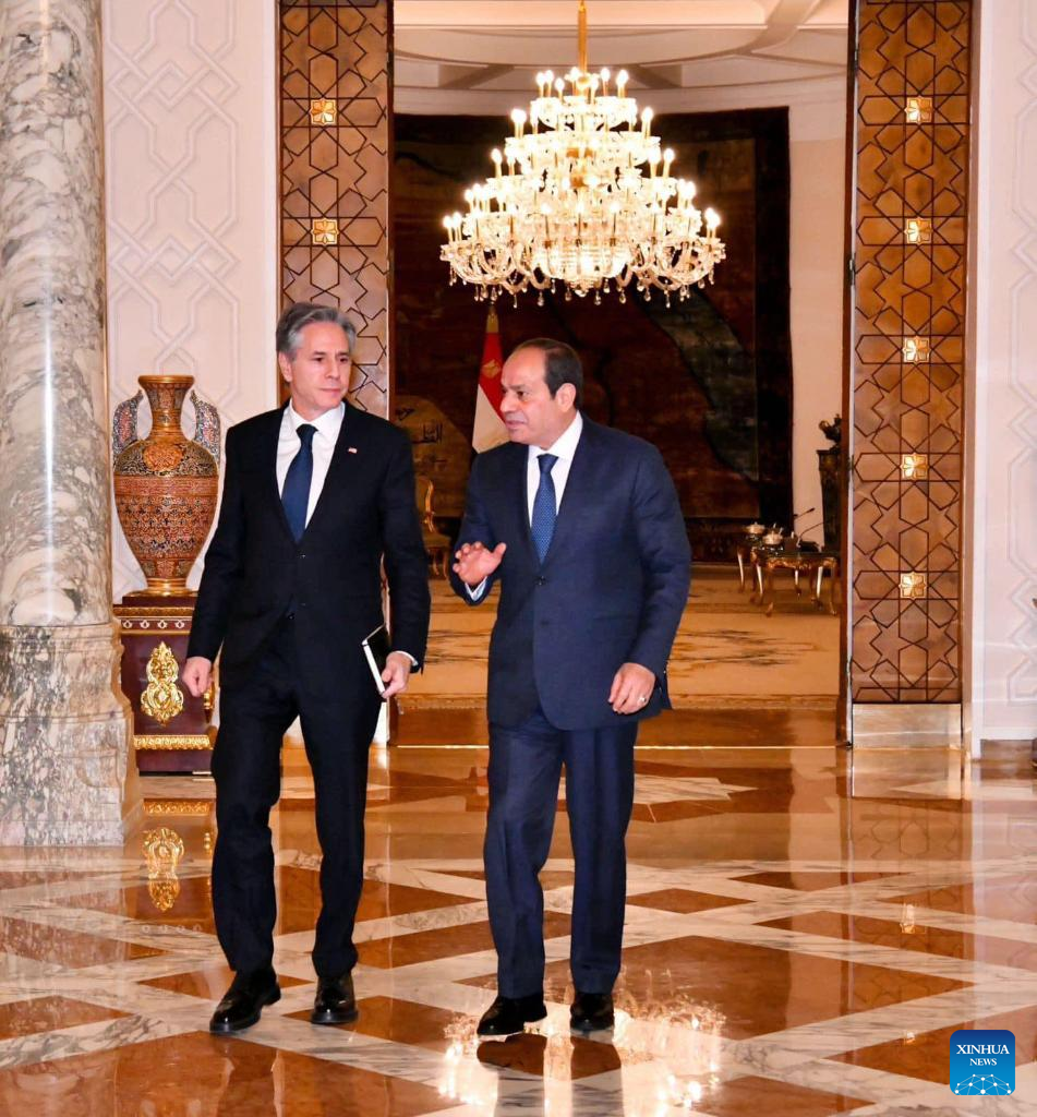 CAIRO, Jan. 11 (Xinhua) -- U.S. Secretary of State Antony Blinken held talks on Thursday with Egyptian President Abdel-Fattah al-Sisi in the Egyptian capital of Cairo as he wraps up his Mideast tour over the ongoing Israeli escalation in the Gaza Strip.
