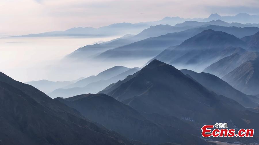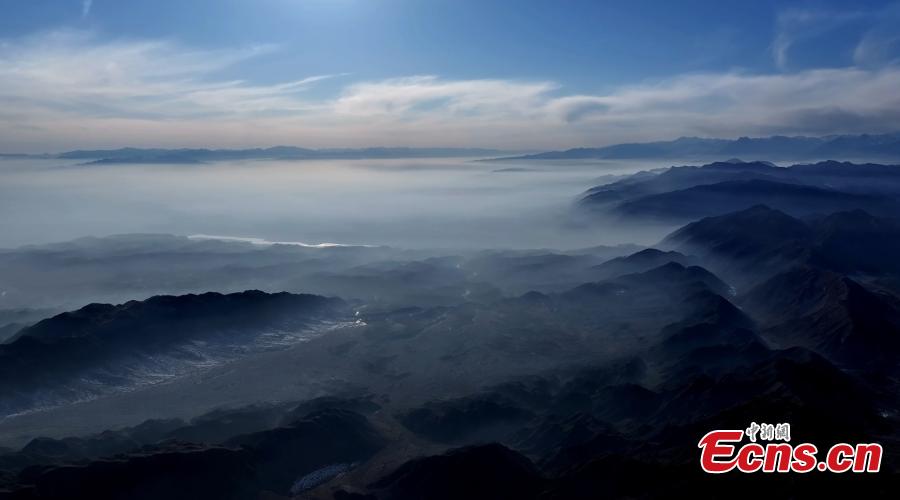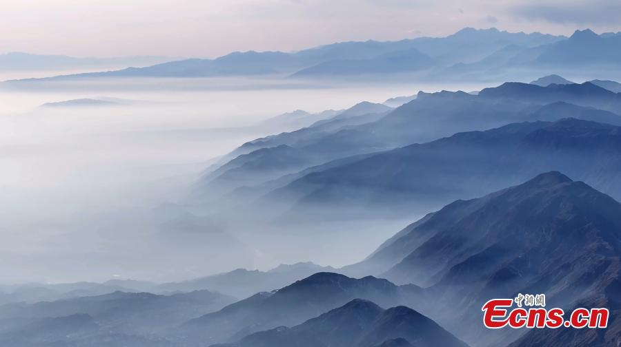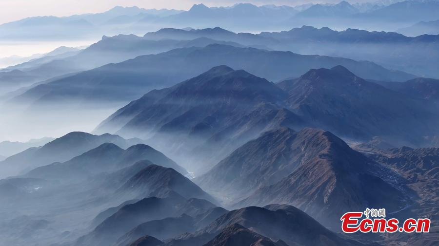 Winter scenery of mist-enveloped mountains in Aksu Prefecture, northwest China's Xinjiang Uygur Autonomous Region. (Photo/China News Service)