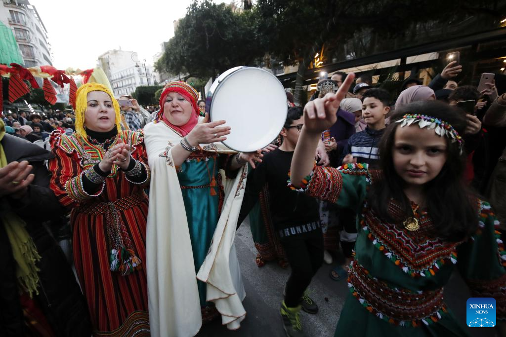People attend a celebration of Amazigh New Year in Algiers, Algeria, on Jan. 12, 2024. Imazighen in Algeria celebrated their New Year on Friday. (Xinhua)