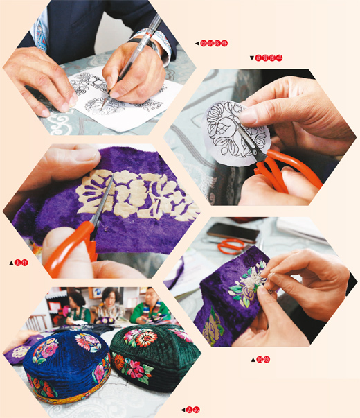 Photo shows the process of making a traditional Uygur hat. ?(Photo courtesy of Dawuti Rexiati)