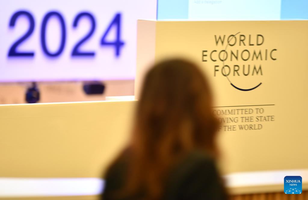 This photo taken on Jan. 14, 2024 shows a view of the media center for the World Economic Forum (WEF) Annual Meeting 2024 in Davos, Switzerland. On the theme of "Rebuilding Trust," the 54th WEF Annual Meeting will take place here from Jan. 15 to Jan. 19. The main topics at the forum range from achieving security and cooperation in a divided world, creating jobs and growth for a new era to a long-term strategy for climate, nature and energy. (Xinhua/Lian Yi)