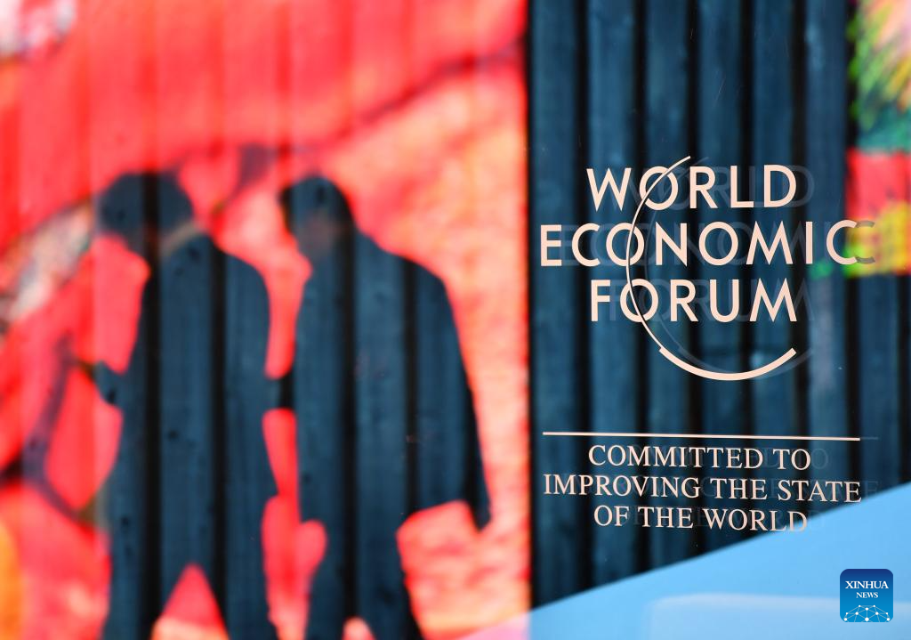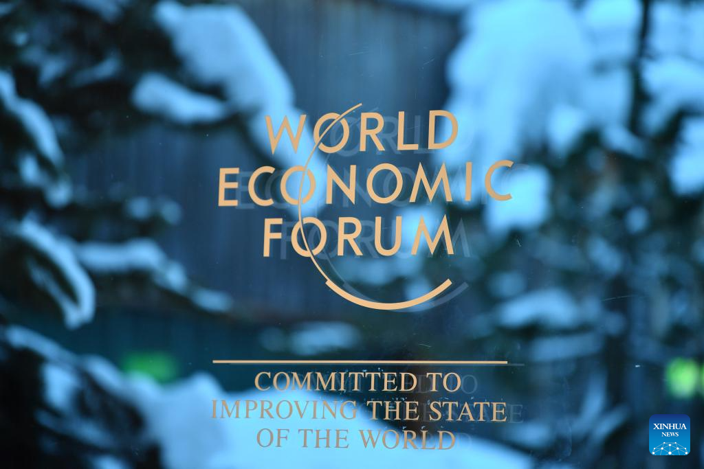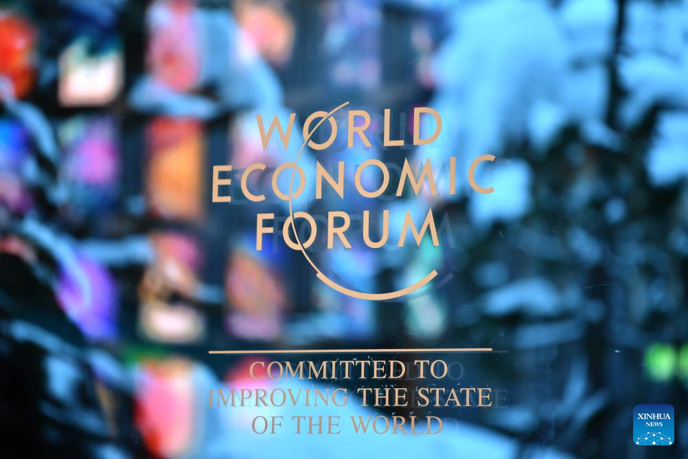 This photo taken on Jan. 14, 2024 shows the logo of the World Economic Forum (WEF) in Davos, Switzerland. On the theme of "Rebuilding Trust," the 54th WEF Annual Meeting will take place here from Jan. 15 to Jan. 19. The main topics at the forum range from achieving security and cooperation in a divided world, creating jobs and growth for a new era to a long-term strategy for climate, nature and energy. (Xinhua/Lian Yi)