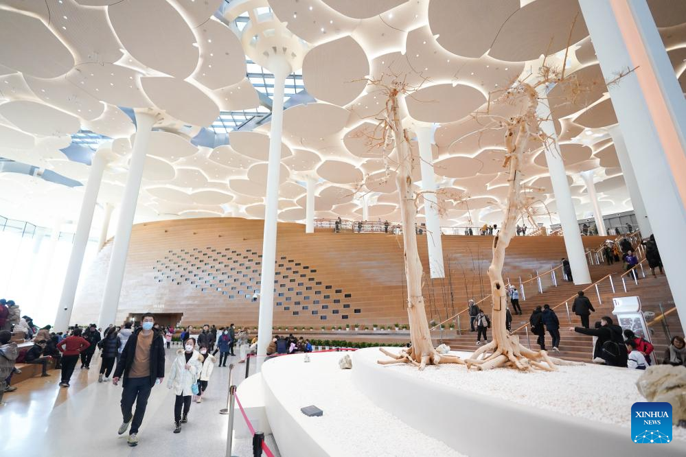 This photo taken on Jan. 14, 2024 shows an interior view of Beijing Library in Beijing, capital of China. Many citizens visited the recently opened library to spend their leisure time this weekend. (Xinhua/Peng Ziyang)