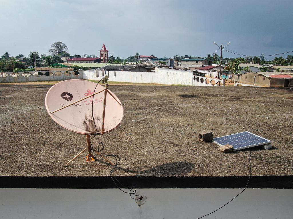 A satellite TV receiver is seen on a roof in Yaou village, Cote d'Ivoire, Jan. 14, 2024. (Xinhua/Han Xu)