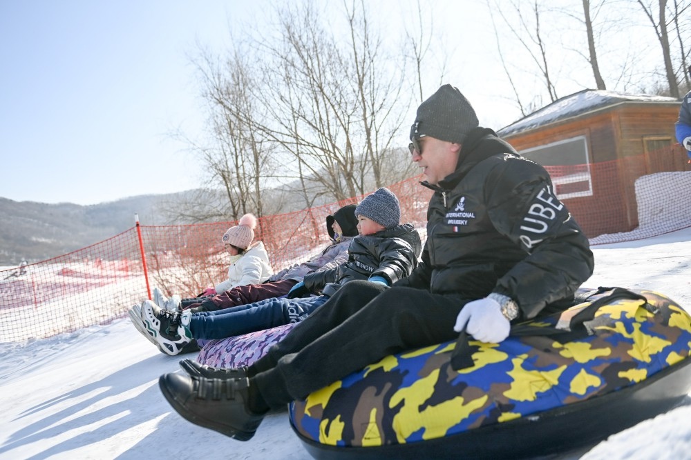 Tourists enjoy snow tubing at a ski resort in Jilin city, northeast China's Jilin Province. (Xinhua/Yan Linyun)