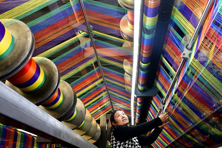 A woman works at an enterprise producing net and rope products in Lizhuang Town of Huimin County, east China's Shandong Province, Nov. 22, 2023. (Xinhua/Guo Xulei)