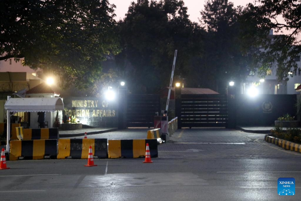 This photo taken on Jan. 17, 2024 shows the entrance of the Pakistani Foreign Ministry in Islamabad, capital of Pakistan. (Xinhua/Ahmad Kamal)