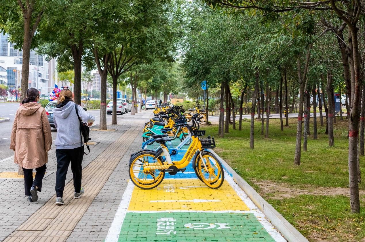 Photo taken on Oct. 9, 2021 shows designated parking zones for shared bikes and mopeds in Hohhot, north China’s Inner Mongolia Autonomous Region. (People’s Daily Online/Ding Genhou)
