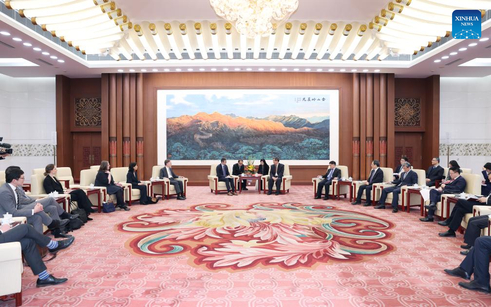 He Lifeng, Chinese vice premier and Chinese lead person for China-U.S. economic and trade affairs, meets with the U.S. delegation of the China-U.S. financial working group in Beijing, capital of China, Jan. 19, 2024. (Xinhua/Yao Dawei)