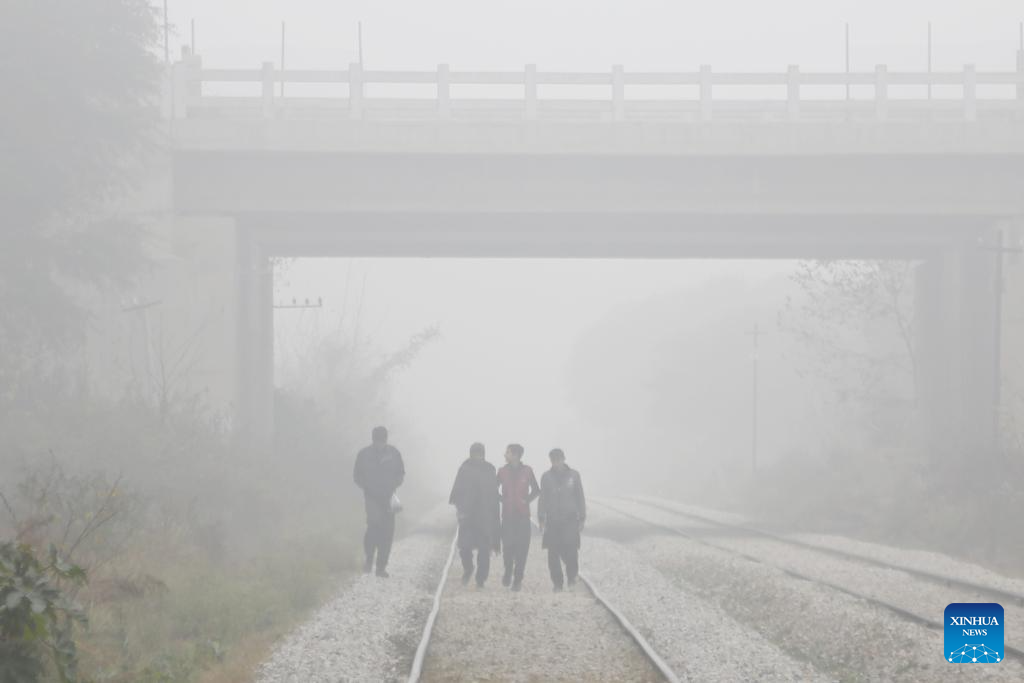 People walk on a foggy day in Islamabad, Pakistan, Jan. 21, 2024. A thick blanket of fog in Pakistan's federal capital Islamabad and its twin city Rawalpindi affected the daily lifestyle of the local residents starting from Friday night. (Xinhua/Ahmad Kamal)
