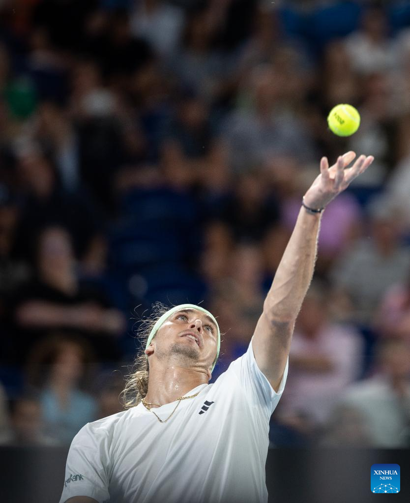 Alexander Zverev serves during the men's singles third round match between Alexander Zverev of Germany and Alex Michelsen of the United States at the Australian Open tennis tournament in Melbourne, Australia, Jan. 20, 2024. (Photo by Hu Jingchen/Xinhua)