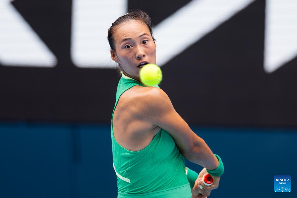 Zheng Qinwen competes during the women's singles 3rd round match between Zheng Qinwen and Wang Yafan of China at Australian Open tennis tournament in Melbourne, Australia, Jan. 20, 2024. (Photo by Chu Chen/Xinhua)