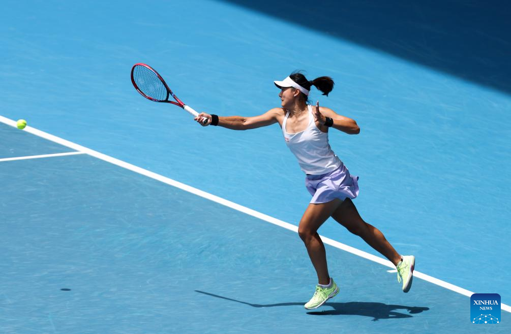Wang Yafan competes during the women's singles 3rd round match between Zheng Qinwen and Wang Yafan of China at Australian Open tennis tournament in Melbourne, Australia, Jan. 20, 2024. (Xinhua/Ma Ping)