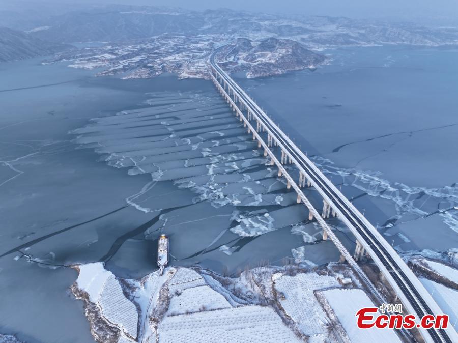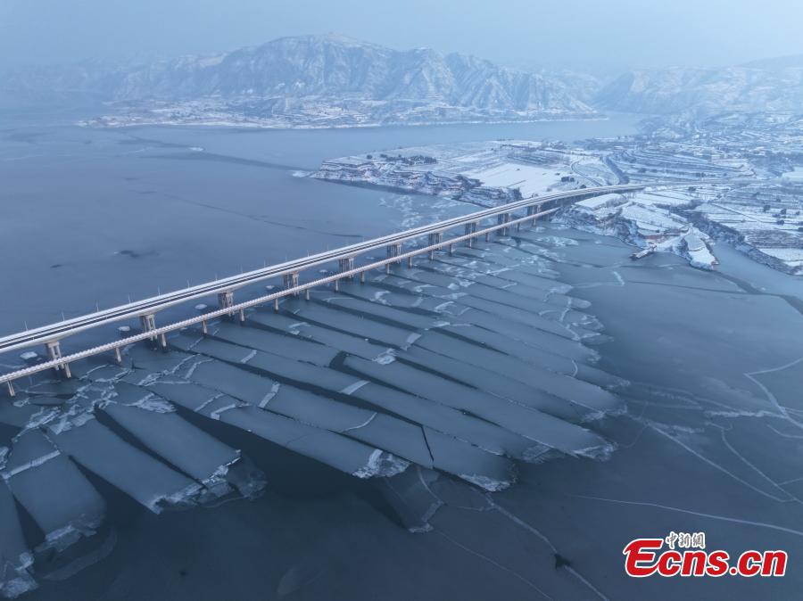 Special landscape of icy waterway appears on the water of Mianchi section of the Yellow River, the second longest river in China, after it froze in sub-zero temperatures in central China's Henan Province. (Photo: China News Service/Yang Shuanchao)