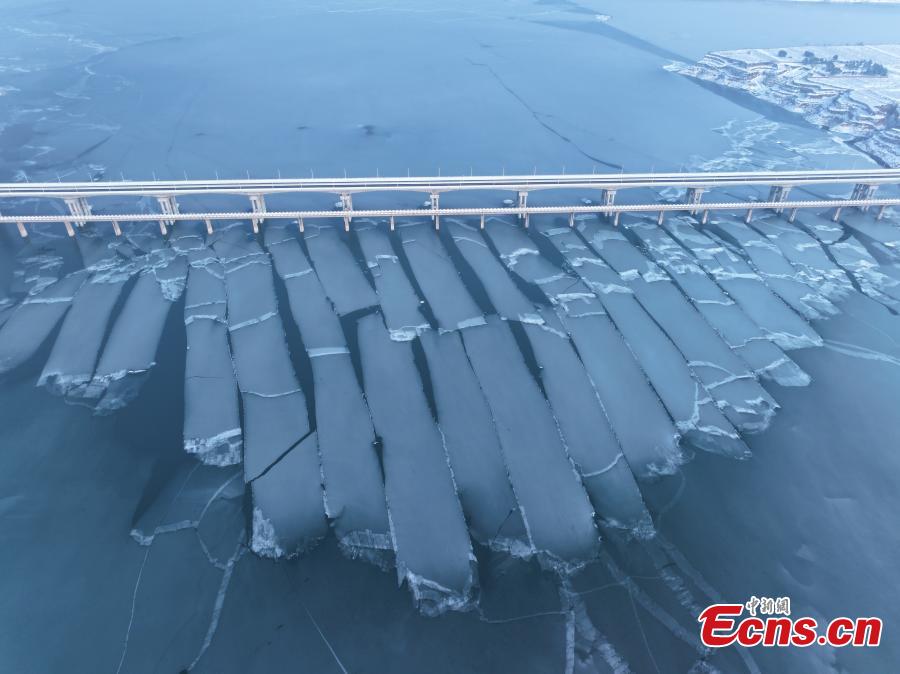 Special landscape of icy waterway appears on frozen Yellow River
