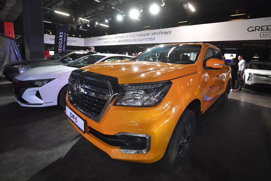 A vehicle from Chinese car brand Dongfeng Motor stands on display during the CarX exhibition-forum in Moscow, Russia, on Oct. 10, 2023. (Photo by Alexander Zemlianichenko Jr/Xinhua)