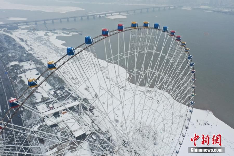 The Star of Nanchang ferries wheel runs in snow in Nanchang, east China's Jiangxi Province, Jan. 22, 2024. (Photo: China News Service/Liu Zhankun)