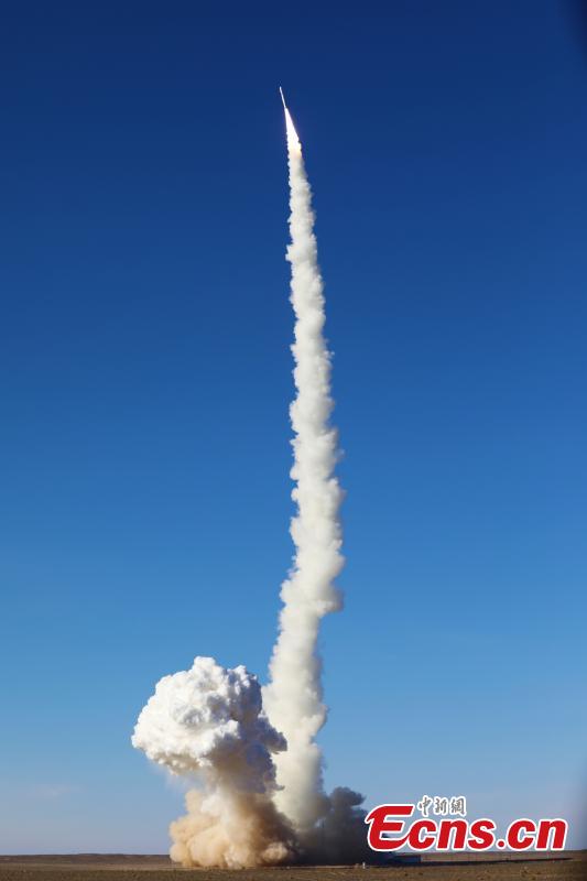 A Lijian-1 Y3 commercial carrier rocket carrying five satellites blasts off from the Jiuquan Satellite Launch Center in northwest China, Jan. 23, 2023. (Photo: China News Service/Wang Heng)