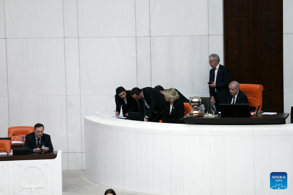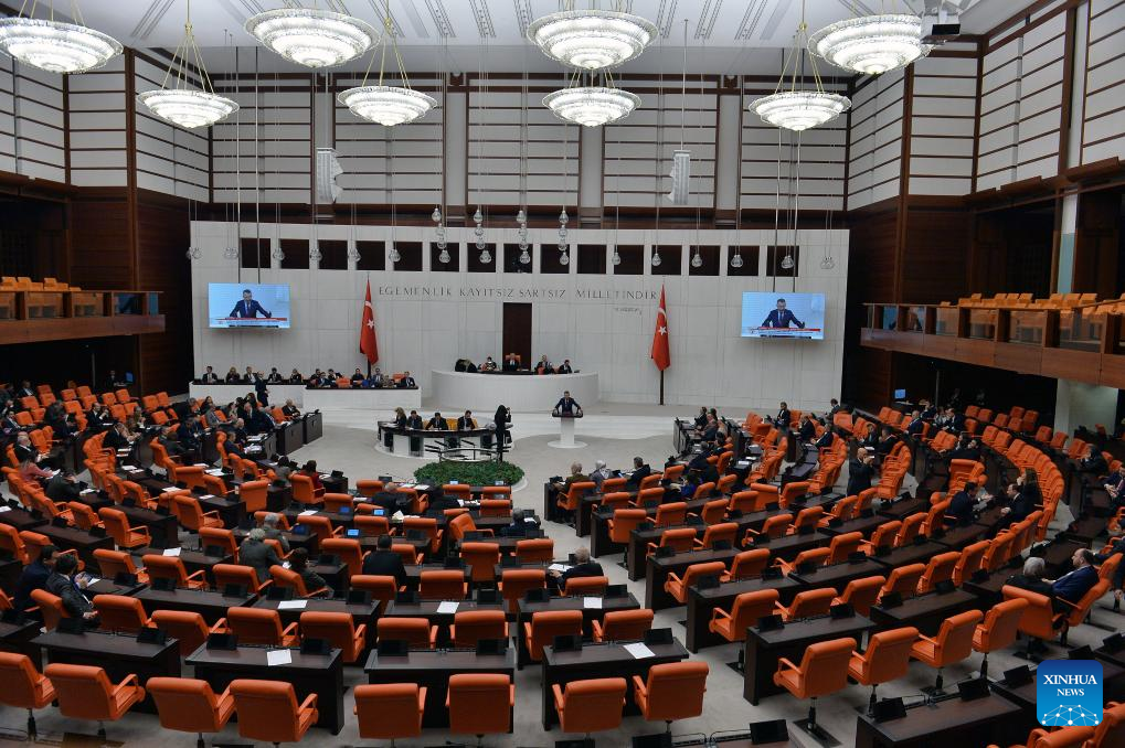 Turkish lawmakers attend a vote on Sweden's NATO bid at the Grand National Assembly in Ankara, Trkiye, on Jan. 23, 2024. Turkish lawmakers on Tuesday approved a long-delayed bill on Sweden's bid to become the 32nd member of NATO. (Photo by Mustafa Kaya/Xinhua)