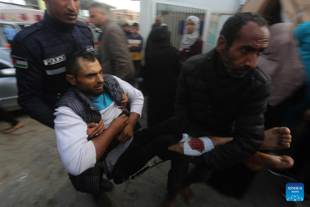 Injured people are seen at a hospital in the southern Gaza Strip city of Rafah, on Jan. 23, 2024. The Palestinian death toll from the ongoing Israeli attacks on the Gaza Strip has risen to 25,490 since Oct. 7, 2023, the Hamas-run health ministry said on Tuesday. (Photo by Khaled Omar/Xinhua)