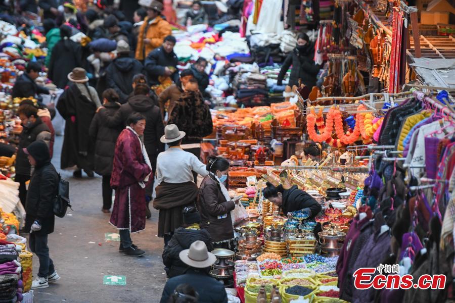 As Losar, or Tibetan New Year, draws near, people in Lhasa get busy with their annual shopping.