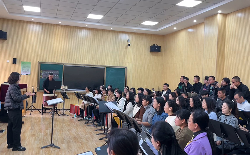 Supported by the local education department, the Yuxi Nie Er Teachers' Choir was established in the city to train teachers from local primary and middle schools.