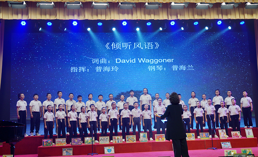 The Yuxi Nie Er Teachers' Choir and the children's choir of the primary school affiliated to Yuxi Normal University render a song adapted from a poem in "The Book of Songs," China's first anthology of poems dating back more than 2,000 years, during a performance. (Photo courtesy of the interviewee)