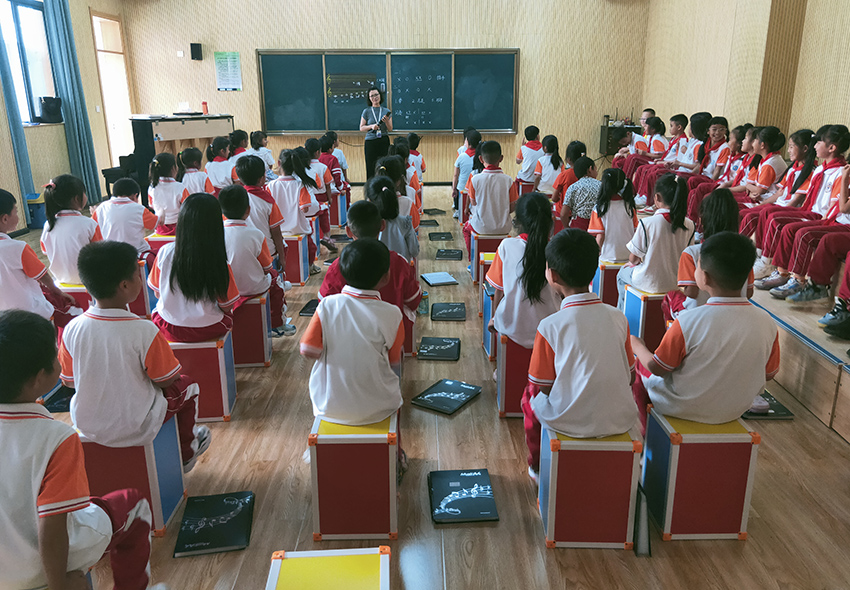 Pu Hailing teaches students of the primary school affiliated to Yuxi Normal University in Yuxi city, southwest China's Yunnan Province. (Photo courtesy of the interviewee)