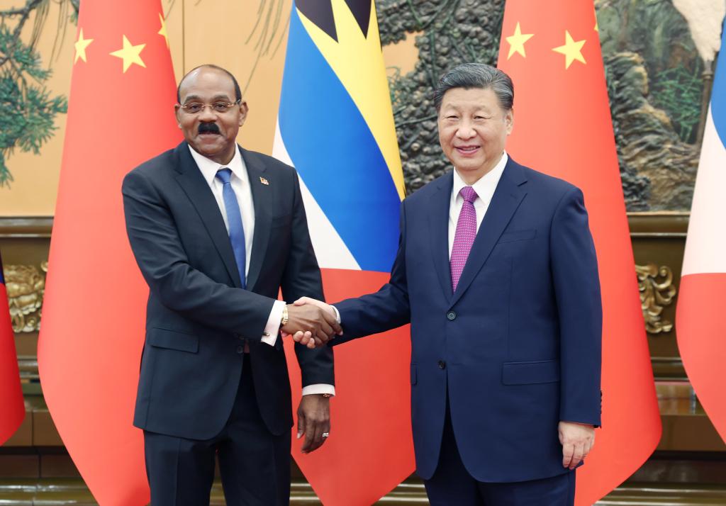 Noting Antigua and Barbuda is one of the first countries in the Eastern Caribbean to establish diplomatic ties with the People's Republic of China, Xi said since the establishment of diplomatic ties 41 years ago, the two countries have always respected and supported each other, setting an example of equality and win-win cooperation between countries of different sizes.