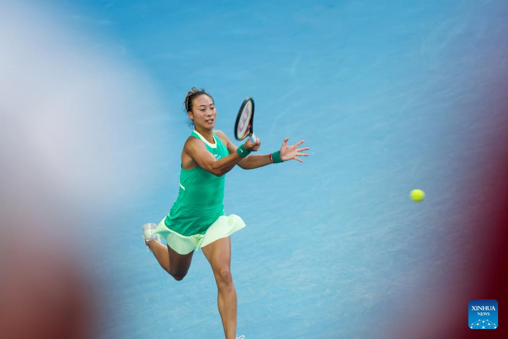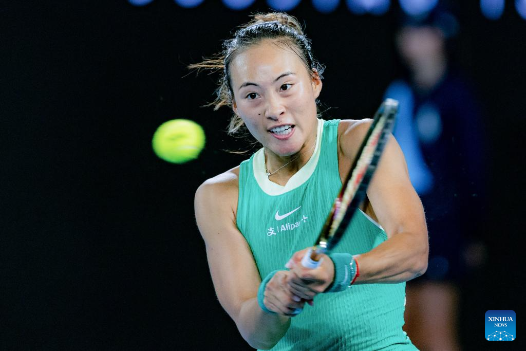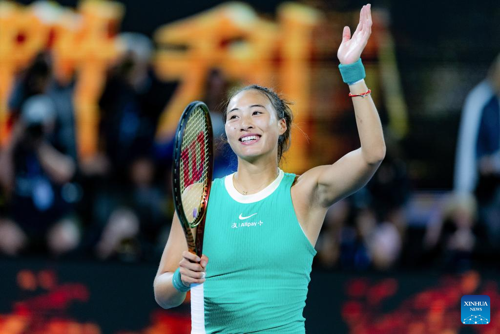 MELBOURNE, Jan. 24 (Xinhua) -- China's top-ranked tennis player Zheng Qinwen reached her maiden Grand Slam semifinal after a comeback victory over unseeded Anna Kalinskaya at the Australian Open on Wednesday.