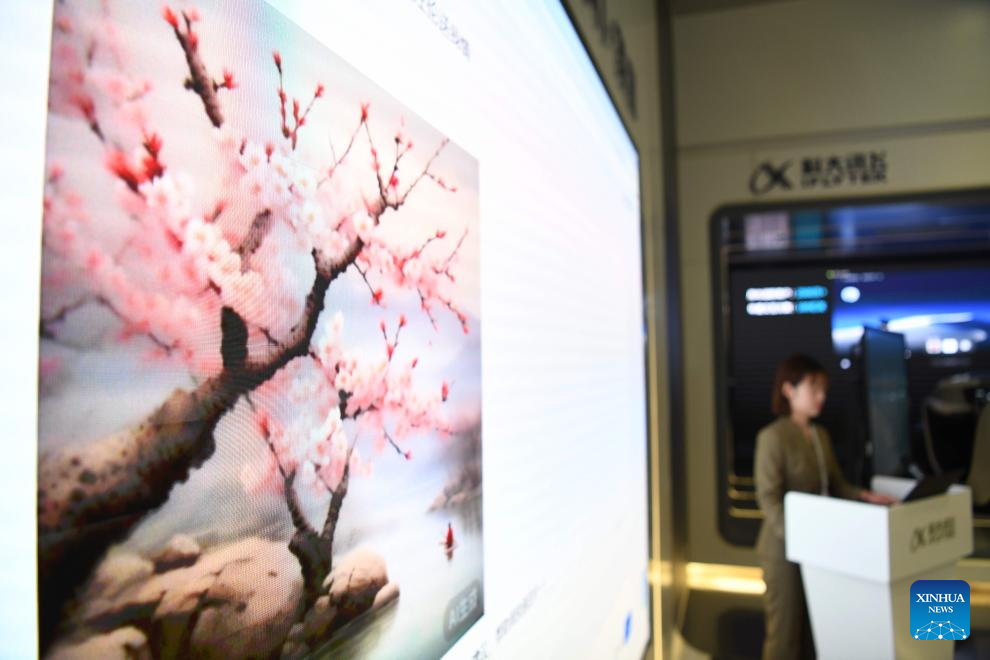A staff member demonstrates the AI-powered large language model dubbed "Spark Desk" at the iFLYTEK Co. Ltd. in Hefei, east China's Anhui Province, Jan. 19, 2024. (Xinhua/Zhang Duan)