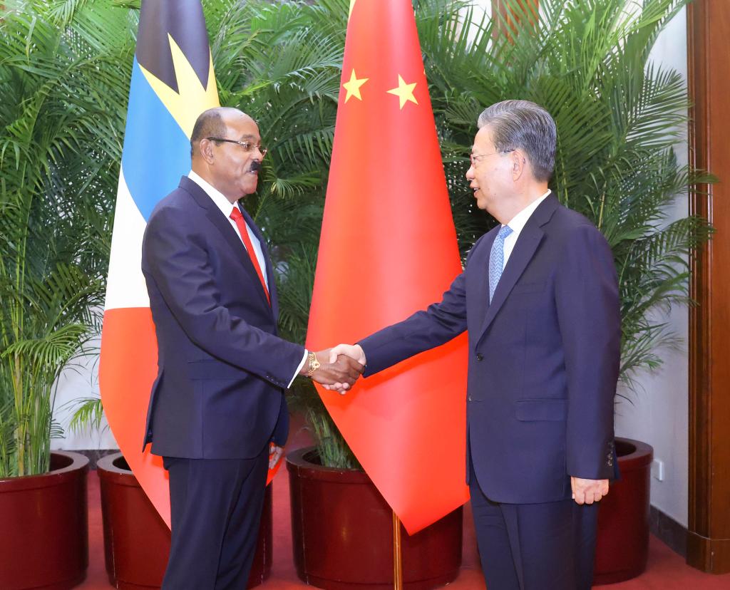 China's NPC is willing to carry out multi-level and multi-channel communication and exchanges with the parliament of Antigua and Barbuda to provide a solid legal guarantee for bilateral cooperation in various fields, Zhao said. He went on to add that China is willing to strengthen coordination and cooperation with Antigua and Barbuda on multilateral occasions, deepen cooperation on climate change and global environmental governance, and jointly safeguard the legitimate rights and interests of developing countries.