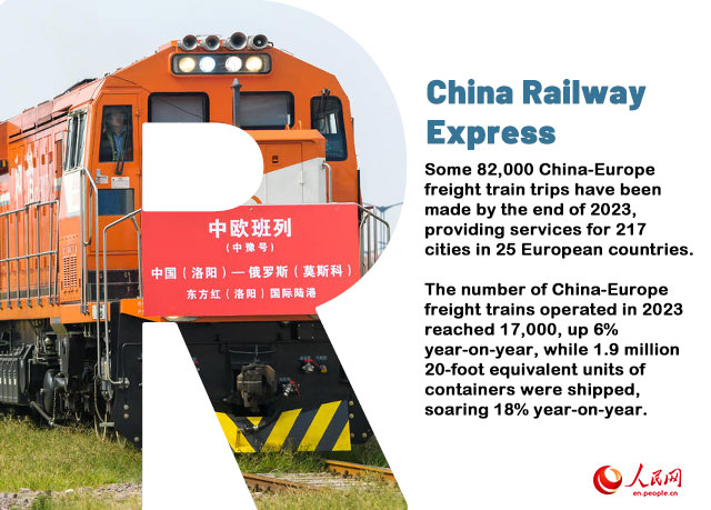 The number of China-Europe freight trains operated in 2023 reached 17,000, up 6 percent year-on-year, while 1.9 million 20-foot equivalent units of containers were shipped, soaring 18 percent year-on-year.