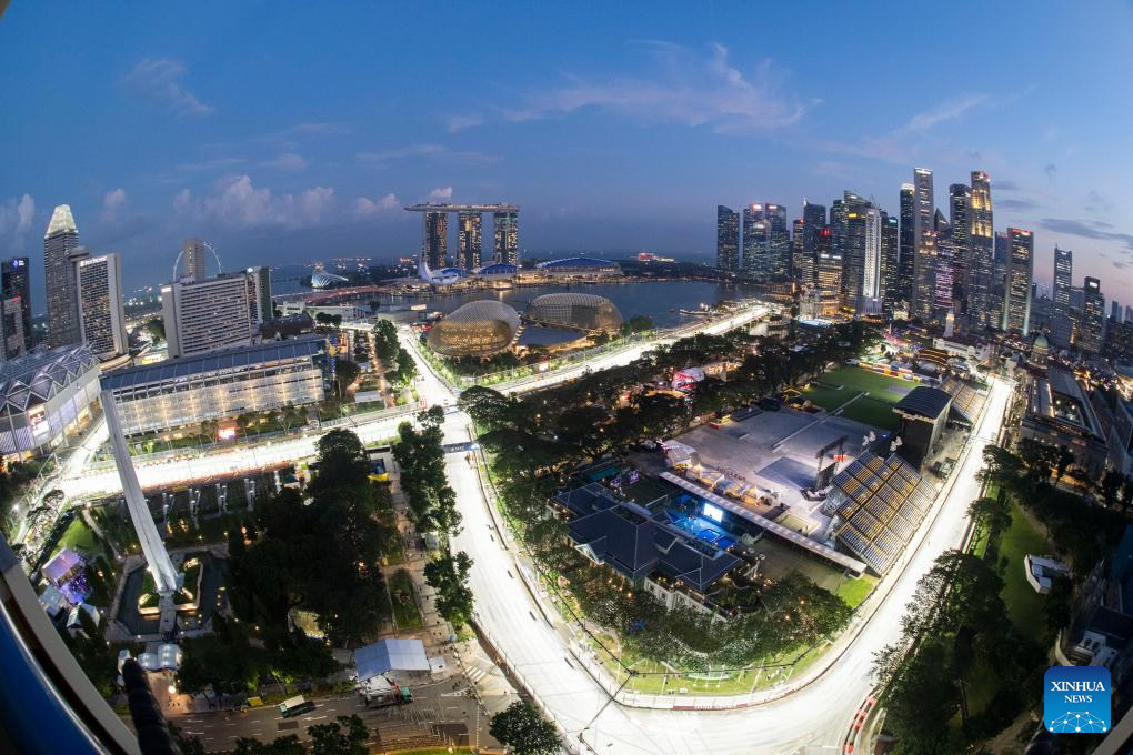 This photo taken on Sept. 13, 2023 shows the race track of Singapore Formula One Grand Prix in Singapore. (Photo by Then Chih Wey/Xinhua)