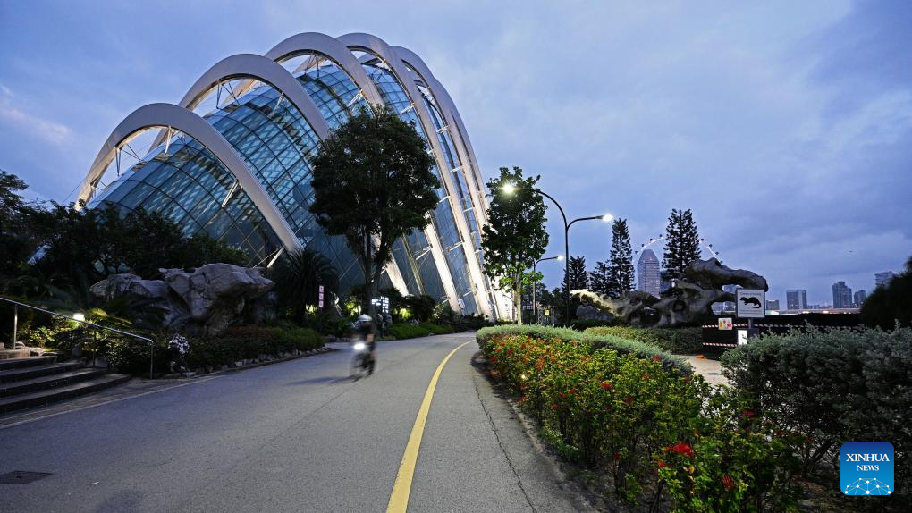 This photo taken on Sept. 8, 2023 shows a park along the Marina Bay in Singapore. (Photo by Then Chih Wey/Xinhua)