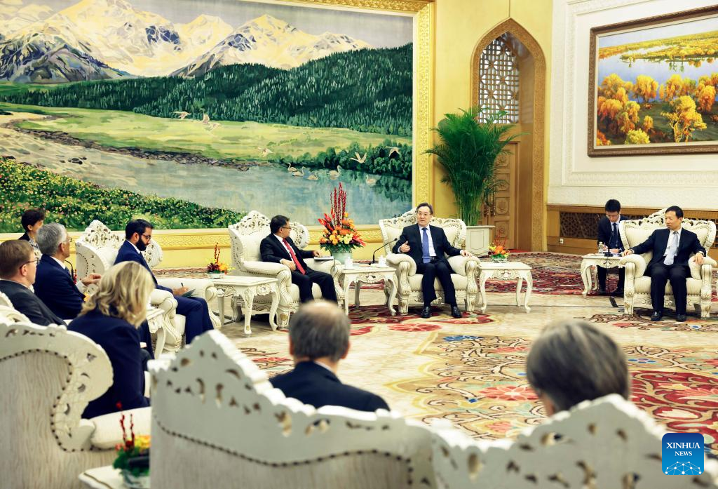 Chinese Vice Premier Ding Xuexiang, also a member of the Standing Committee of the Political Bureau of the Communist Party of China Central Committee, meets with a delegation of executive directors from the World Bank in Beijing, capital of China, Jan. 25, 2024. (Xinhua/Liu Weibing)