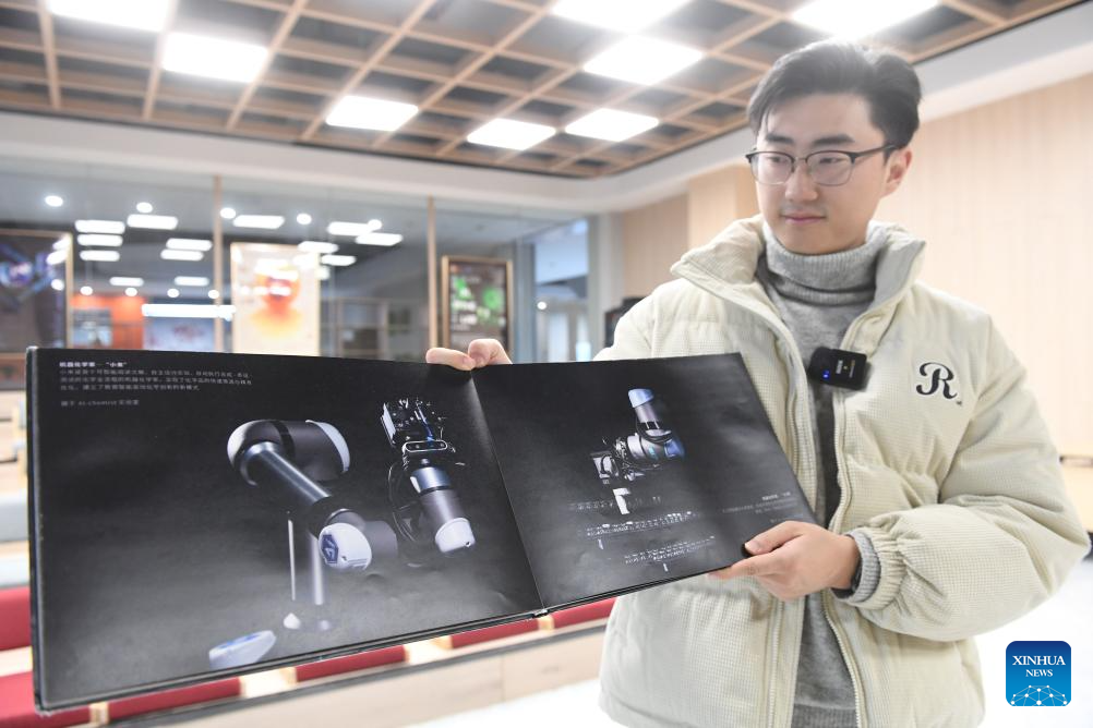 Yang Yuanfan communicates with a member of his company in Hefei, east China's Anhui Province, Jan. 18, 2024. (Xinhua/Zhang Duan)