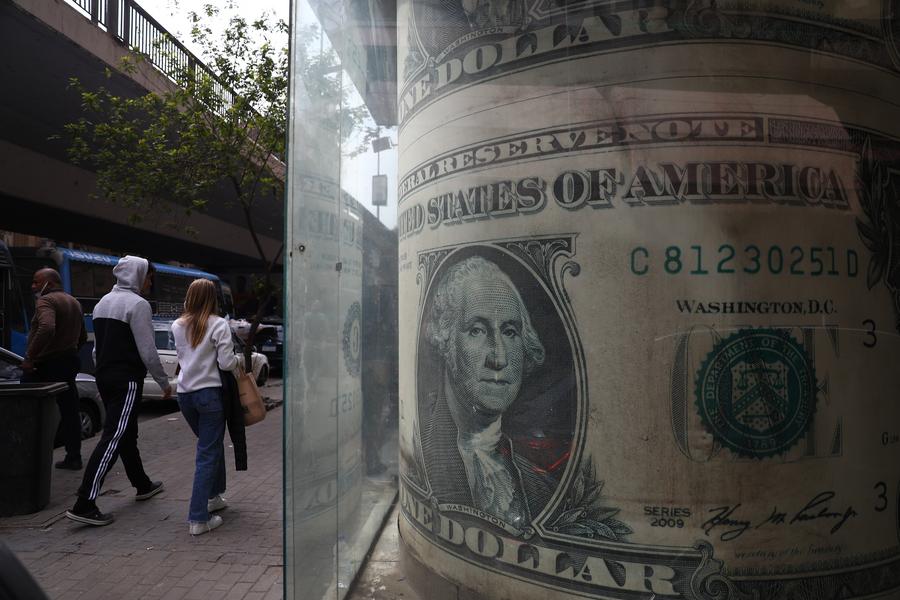 People walk past a foreign exchange office in Cairo, Egypt, on March 21, 2022. (Xinhua/Ahmed Gomaa)